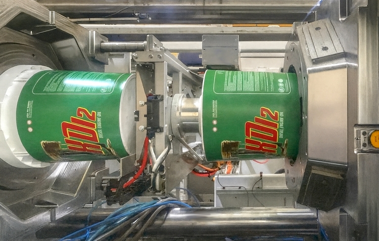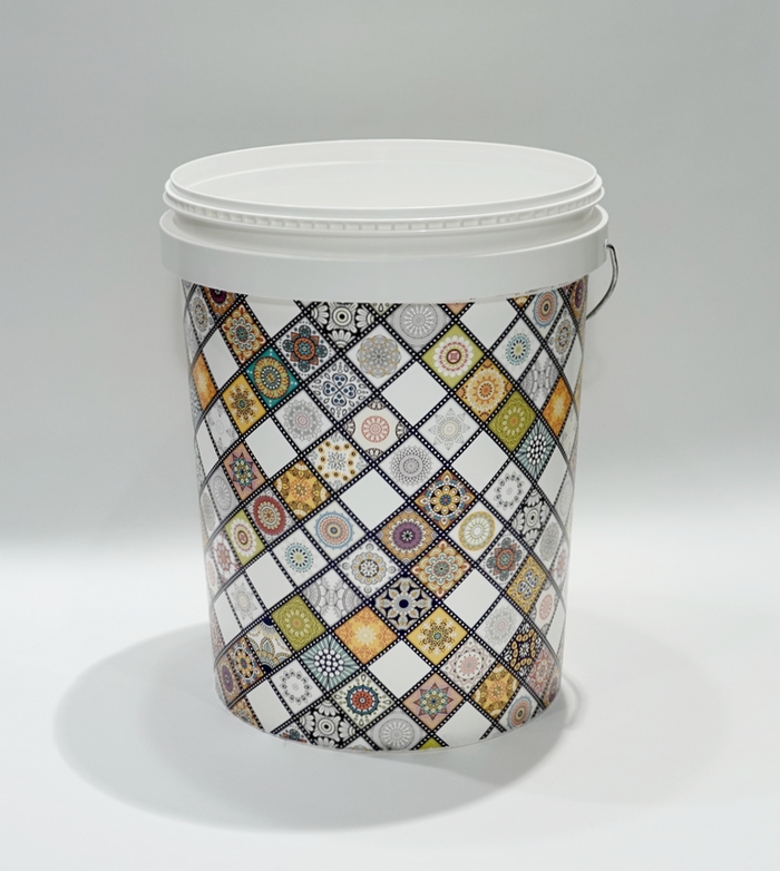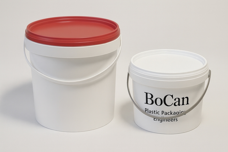 ► Picture of a 21L SuperPail double lock with in mould label. Made in polypropylene copolymer & 40% of post consumer recycled. Mould is twin cavity and runs in 19s including take-off. Metal and plastic handle available. Ask BoCan for more info.